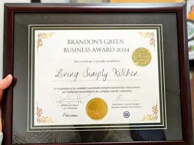 The City of Brandon and the Brandon Chamber of Commerce are delighted to announce that Living Simply Kitchen has been named the 2024 winner of Brandon's Green Business Award.