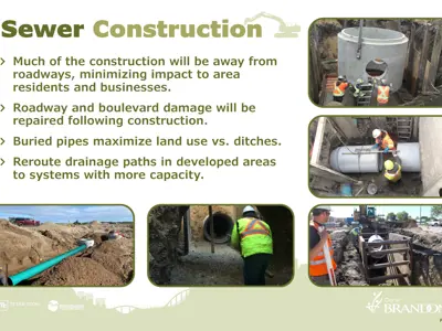 - Includes construction of new naturalized stormwater pond and land drainage sewers.