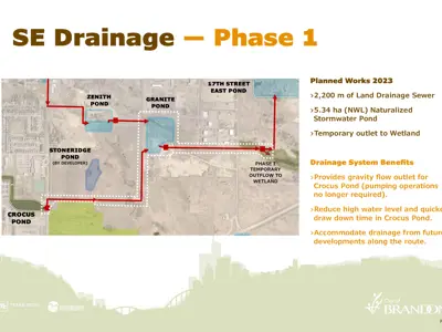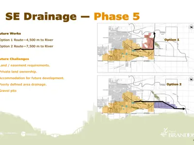 - The Phased Construction Program will see new infrastructure within the existing Southeast Drainage network and within the Southeast Area and the East Brandon Industrial Area