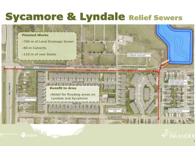 - Current concept to provide relief to areas prone to flooding along Sycamore Drive and Lyndale Drive.