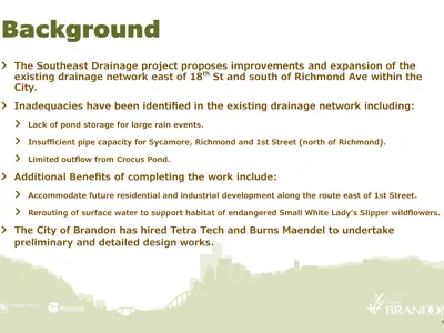 - A total of 4 stormwater retention ponds are currently proposed for construction as part of the Southeast Brandon Drainage Improvements Project.