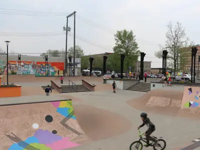 The skate plaza is the chance to marry the old with the new. Built on the corner of 9th & Princess at the old Prince Edward Hotel site, it commemorates the importance the railway has had on our history while providing a place for our youth to enjoy what it means to be young.