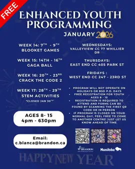 *If you are 16 – 18 years old and interested in becoming a Jr. Leader you can talk to our Rec Team at the program, or fill out this form and send it to c.blanca@brandon.ca
